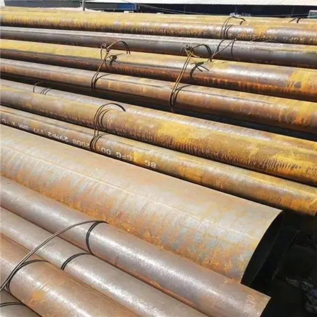 宝鸡gb3087无缝钢管要用钢锭或实芯管料经破孔制成毛管,随后经热扎、冷轧或冷拨制成。宝鸡gb3087无缝钢管在中国钢管业中具备重要的位置。据不完全统计,我国目前无缝管生产公司约240多家,无缝管机组约250多套,年产能力约450多万吨。从规格看,宝鸡gb3087无缝钢管的原料是圆管坯,圆管胚要经过切割机的切割制作成长短约为1米胚料,并经输送带送至溶炉内加温。钢坯被送进溶炉内加温,温度约为1200℃。燃料为氢气或乙炔。炉内温控是关键性的难题.圆管坯出炉后要经过压力穿孔机开展穿空。一般较常见的穿孔机是锥形辊穿孔机,这类穿孔机生产效率高,产品品质好,破孔扩径量多,可穿多种钢种。破孔后,圆管坯就先后被三辊斜轧、连轧或挤压。挤压后应脱管定径。定径机根据锥形钻头高速运转入钢胚打孔,产生钢管。钢管内径由定径机钻头的直径长短来决定。钢管经定径后,进入冷却塔中,根据喷水冷却,钢管经冷后,就要被校直。钢管经校直后由输送带送往金属探伤机(或压力试验)进行内部探伤。若钢管内部有裂痕,气泡等问题,将被检测出。钢管质检后还要通过严格手工选择。钢管质检后,用漆料喷上编号、规格、生产日期等。并由吊车吊入仓库里。